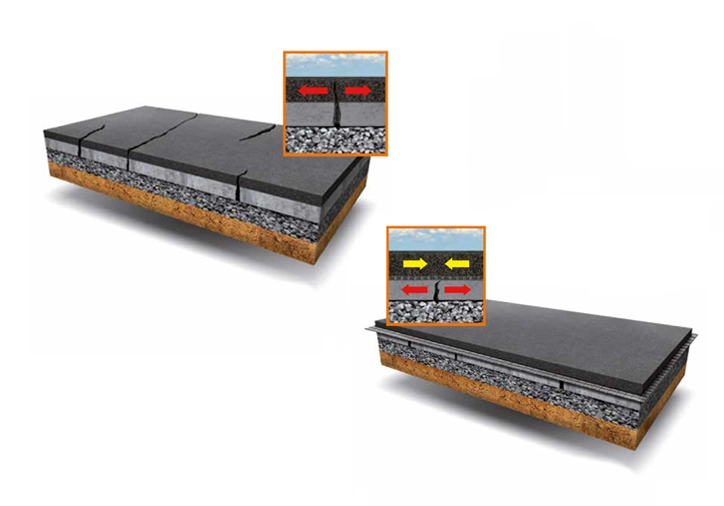 Prin utilizarea acestui geocompozit, durata de viata a sistemului rutier poate fi extinsa semnificativ, iar costurile de intretinere reduse considerabil.