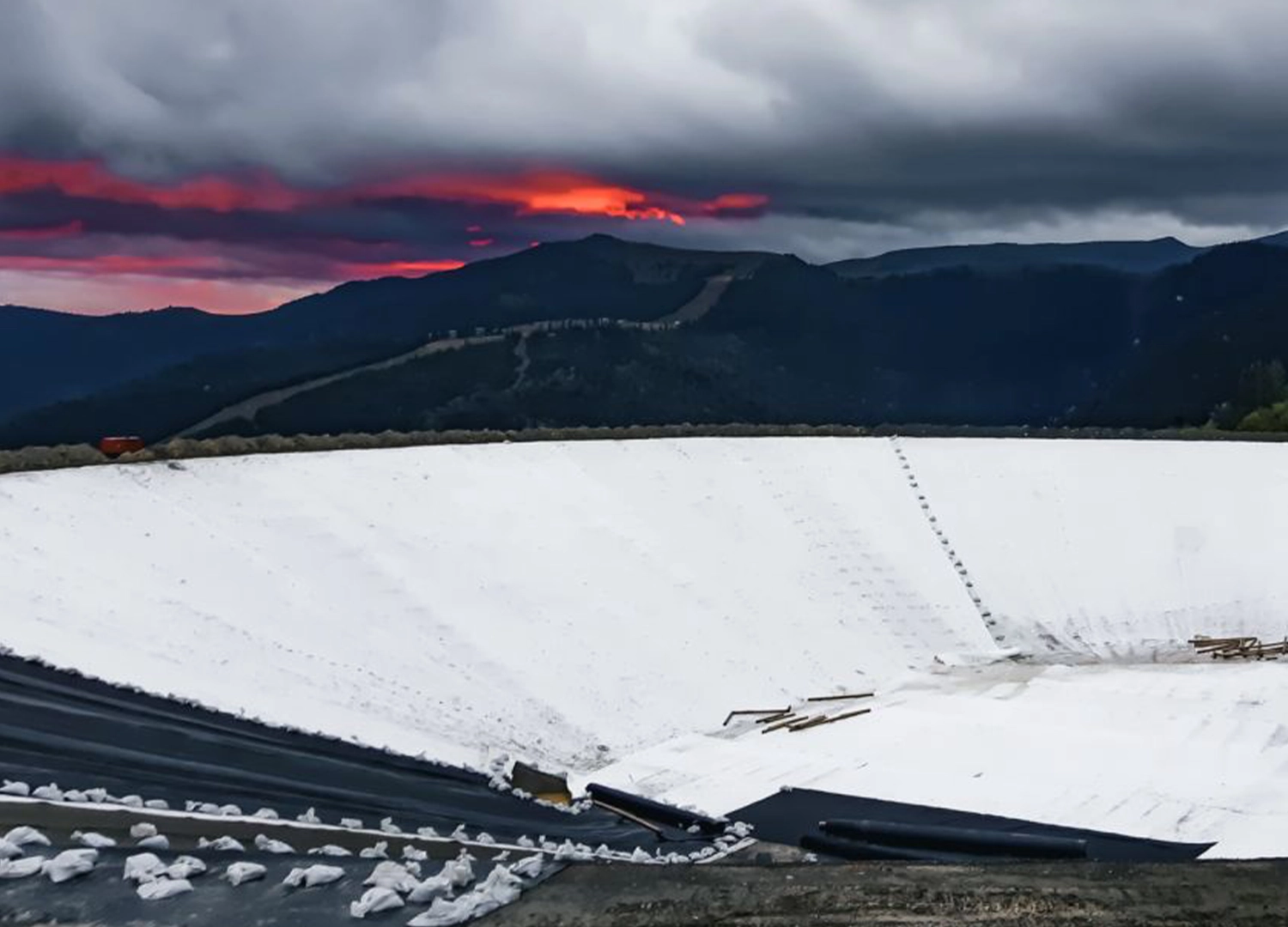 Aceste materiale formeaza un sistem geosintetic multistrat, proiectat pentru a asigura impermeabilitate, stabilitate si durabilitate in conditii montane dificile.